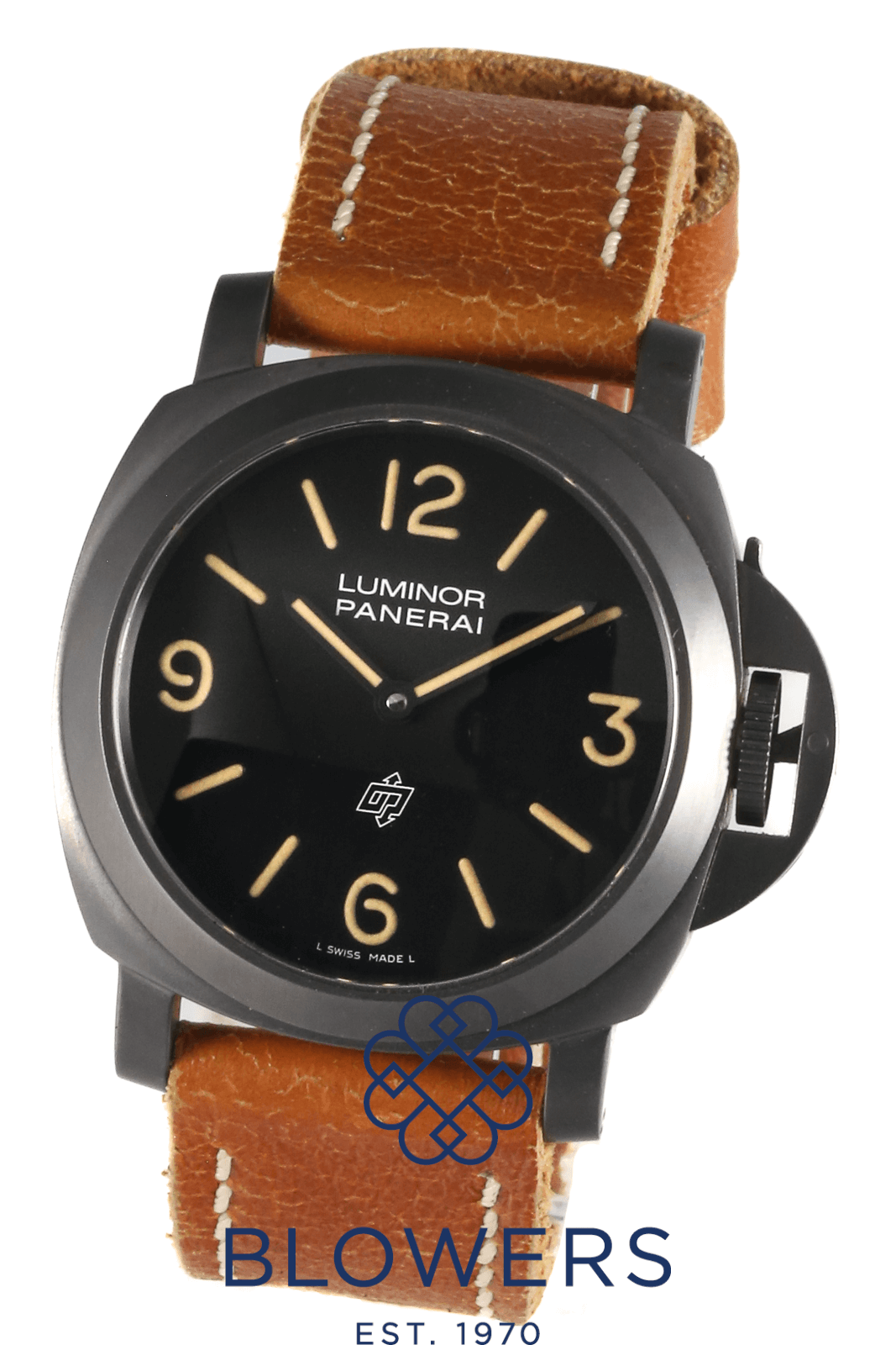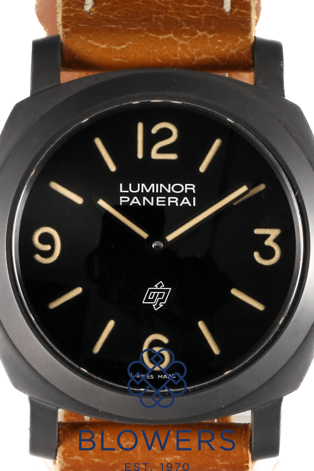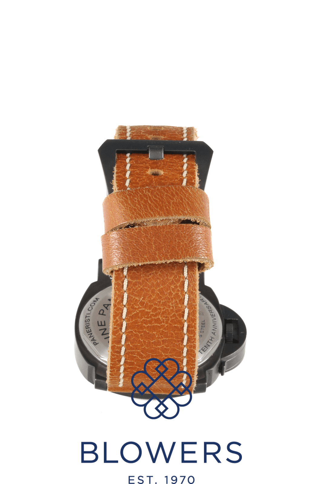 Panerai Luminor PAM00360. Limited Edition Of 300 Pieces; Produced To Commemorate The Tenth Anniversary Of WWW.Paneristi.Com. PVD Case Diameter 44mm Water Resistant To 300 Meters. Hand Wound Mechanical Chronometer Movement. Black Dial With Op Pre-Vendome Logo, Special ‘aged’ Luminova Hour Markers And Hands. Specially Made Tan Calfskin Strap, with an additional black rubber Panerai strap. Box and papers dated June 2011.