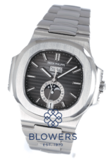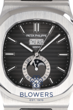 The Patek Philippe 5726 is an iconic timepiece in the brand’s Nautilus collection, renowned for its combination of sophisticated design and practical functionality. Introduced in 2010, it marked Patek Philippe’s venture into annual calendar complications within the Nautilus line. The 5726 features a sleek stainless steel case with the signature Nautilus porthole design, housing a self-winding mechanical movement meticulously crafted by Patek Philippe’s master watchmakers. Its annual calendar complication displays the day, date, and month, requiring adjustment only once a year at the end of February. The watch also includes a moon phase display, adding a touch of elegance to its dial. Over the years, the Patek Philippe 5726 has garnered a cult following among watch enthusiasts and collectors alike, admired for its timeless aesthetic and horological excellence. Its rich history and enduring popularity make it a coveted piece in the world of luxury timepieces.