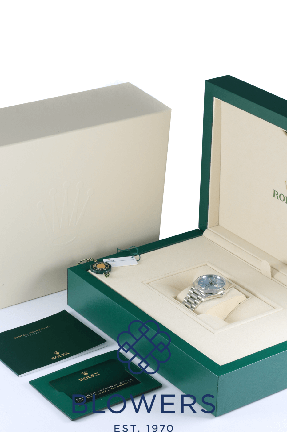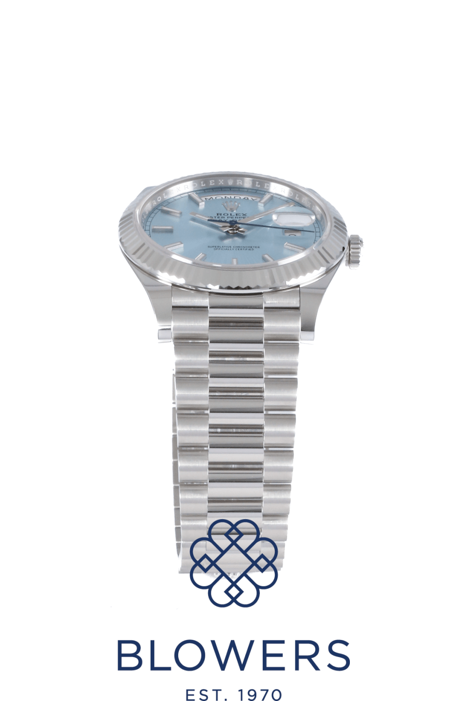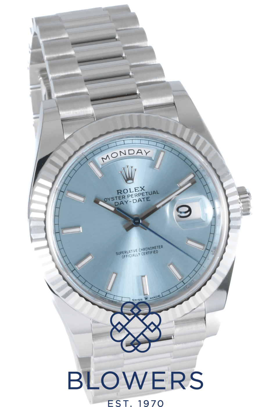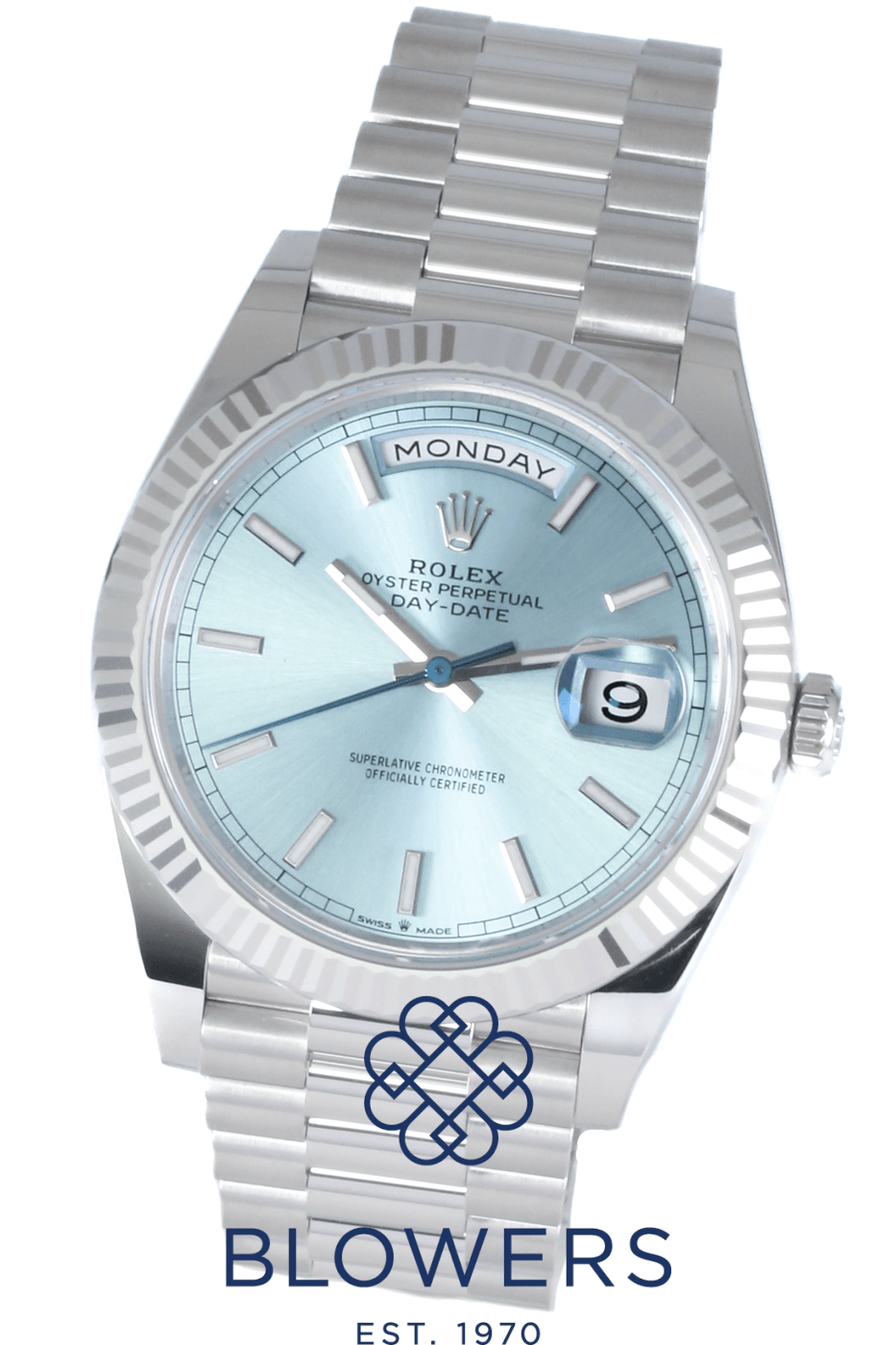 The Rolex Day-Date 40 228236 is considered one of the most prestigious watches produced by Rolex. Crafted entirely from 950 Platinum, it represents the highest level of luxury within the Day-Date collection. A distinctive feature of this model is the ice-blue dial, a colour reserved exclusively for Rolex platinum watches, which subtly indicates the watch’s rare material.