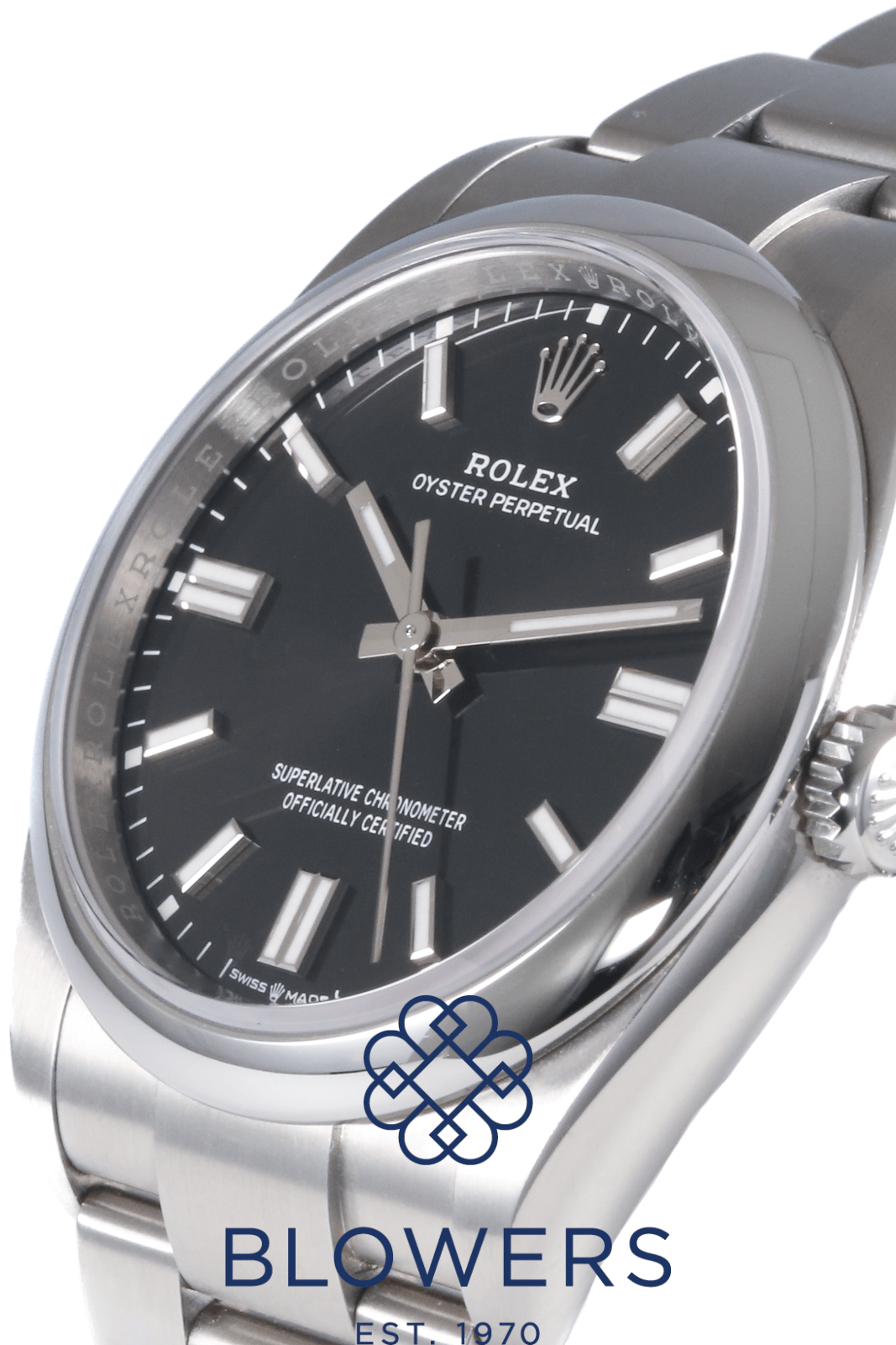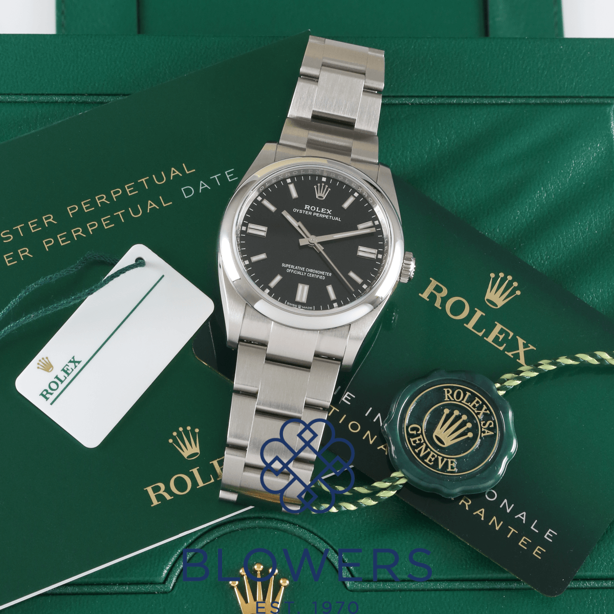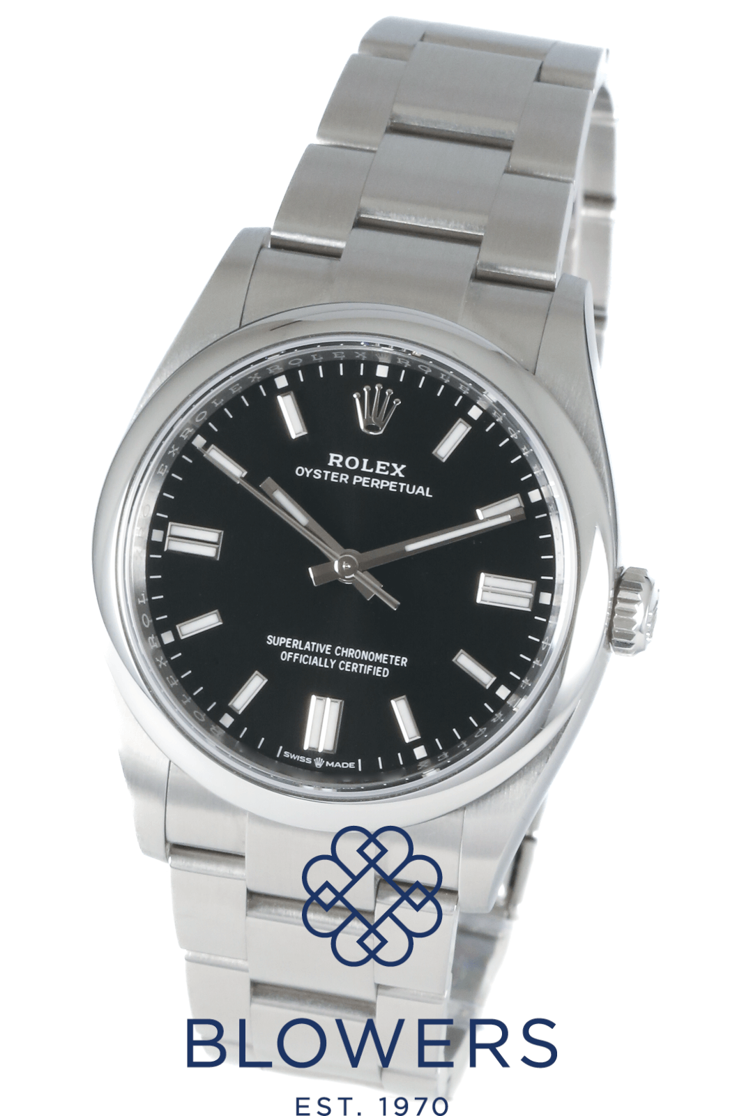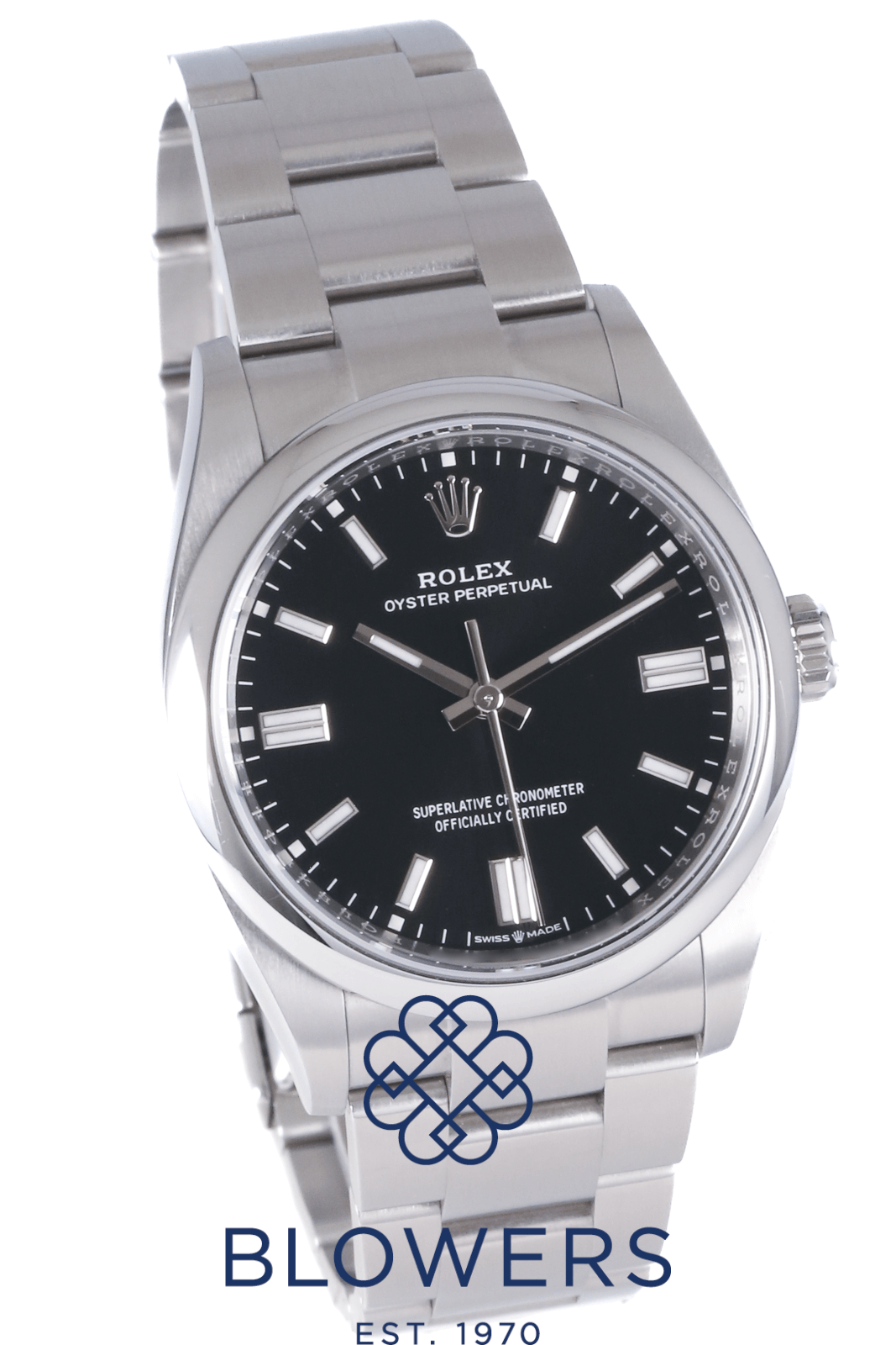 Rolex Oyster Perpetual 126000. Polished 36mm Case Which Is Water Resistant To 100 Metres. Rolex Calibre 3230 Automatic Chronometer Movement. Black Dial With Index Hour Markers. Steel Polished Bezel. Steel Oyster Bracelet Equipped With An Oysterclasp And The Easylink Comfort Extension Link. Box and Papers Dated June 2024