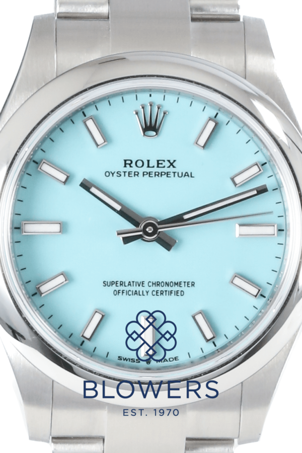 Rolex Oyster Perpetual 277200. 31mm Stainless Steel Case, Which Is Water Resistant To 100 Metres. Rolex Calibre 2232 Automatic Chronometer Movement. Turquoise (“Tiffany”) Dial With Index Hour Markers And Chromalight Display With Long Lasting Blue Luminescence. Steel Polished Domed Bezel. Steel Oyster Bracelet Equipped With A Folding Clasp. Box and Papers dated February 2025. UNWORN.