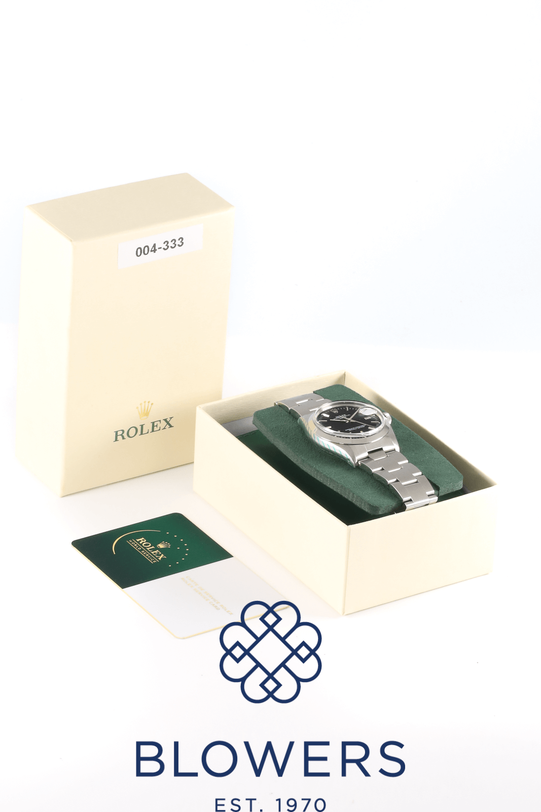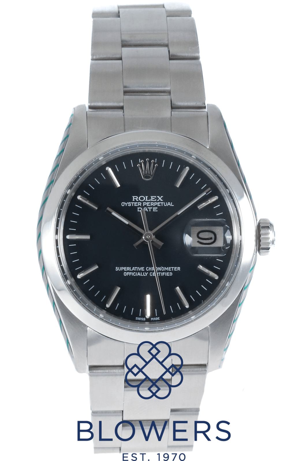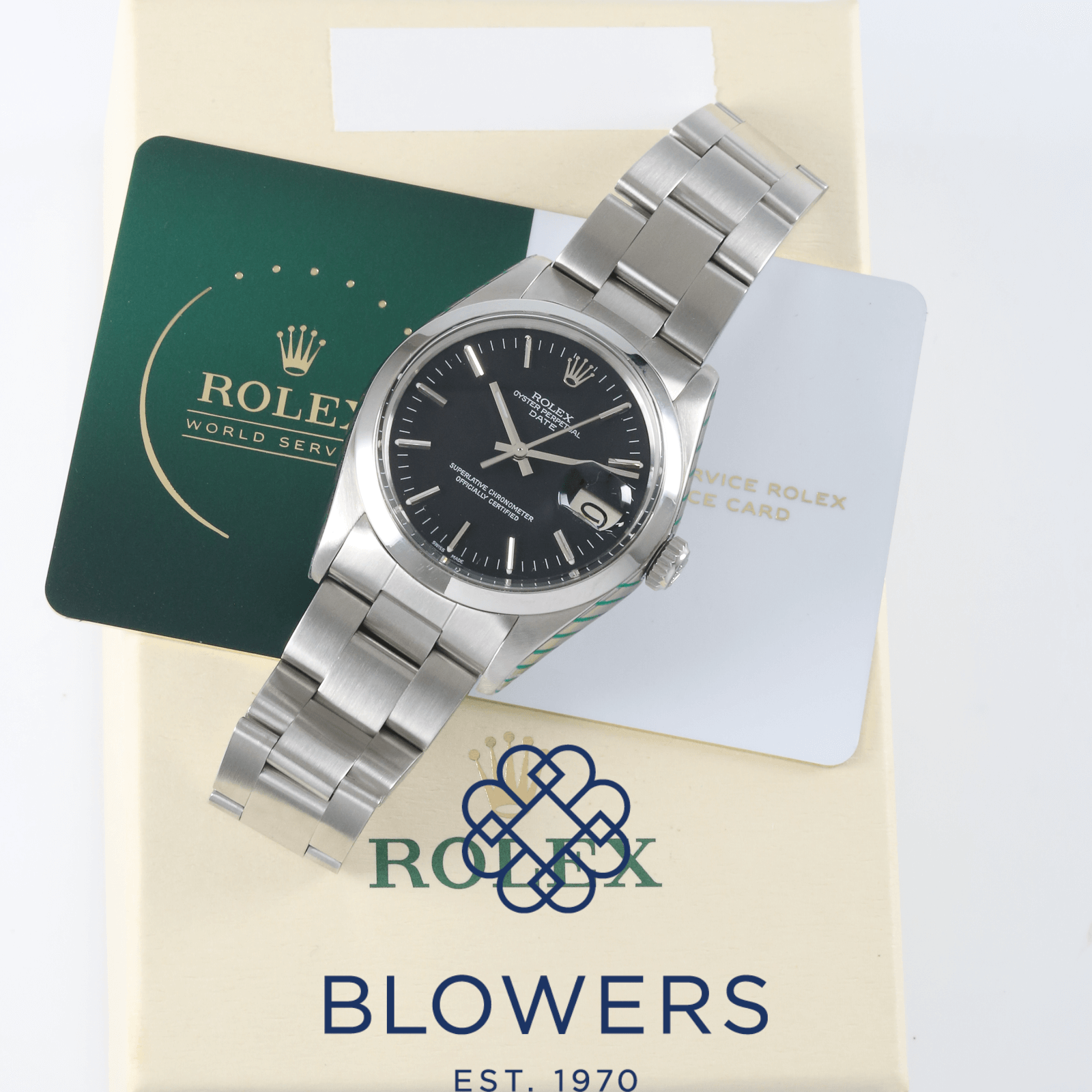 Rolex Oyster Perpetual Date 1500/0. 34mm Steel Case. Black Dial With Index Hour Markers. Date Window Located At The 3 o’clock Position. Steel smooth bezel. Steel Oyster Bracelet with Folding Clasp. Service Box and Papers Only, Dated December 2025. Watch Circa 1979.