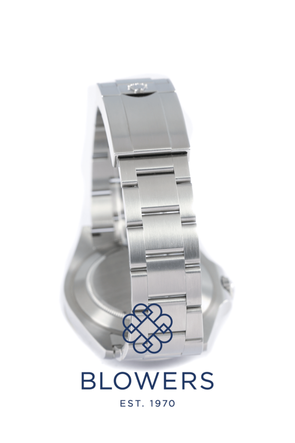 Rolex Oyster Perpetual Explorer II 226570. Steel 42mm case, water resistant to 100 meters. Paraflex shock absorbers and a non-magnetic Parachrom hairspring. Automatic Rolex 3285 calibre movement. A power reserve of 70 hours. White maxi dial with applied luminous hour markers. Central luminous hours, minues and seconds hands. Featuring a third orange hand,which has returned to the arrow shape and colour of the original 1971 model, for secondary time zone function. Fixed steel bezel with a 24 hour graduation scale. A cyclops lens date window at the 3 o’clock position. Steel oyster lock bracelet with a folding clasp and the Easylink 5 mm comfort extension link. Box and papers dated July 2023.