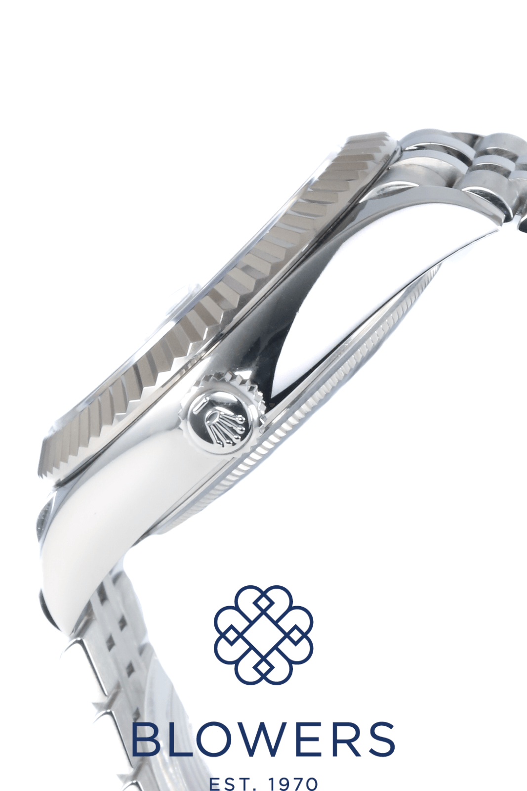 This is a lovely example of Rolex’s most sophisticated combined Travel-Time and Annual Calendar timepiece, accurate to +2/-2 seconds per day. The contrast between the bright-blue dial, the 18ct white gold fluted Command Bezel and Oystersteel case makes a compelling statement for the international traveller.