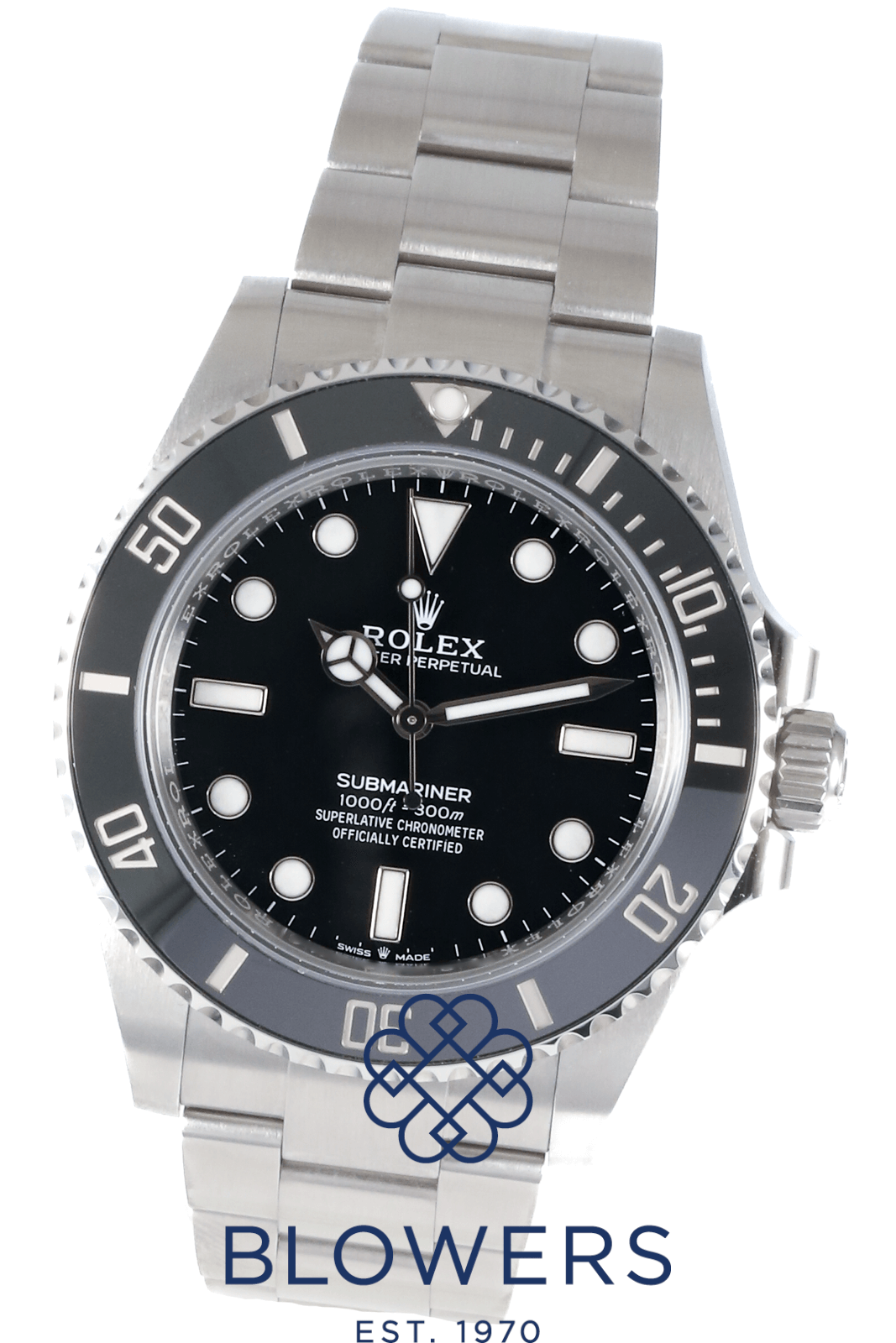 Rolex Oyster Perpetual Submariner Non-Date 124060. 41mm steel case which is water resistant to 300 meters. Automatic calibre 3230 movement featuring a 70 hour power reserve. Black maxi dial with luminous index hour markers for chromalight display. Central luminous hours, minutes and seconds hands. Black ceramic unidirectional bezel with a 60-minute graduation scale. Steel Oyster lock bracelet with comfort adjust. Unworn. Box and papers dated August 2025.