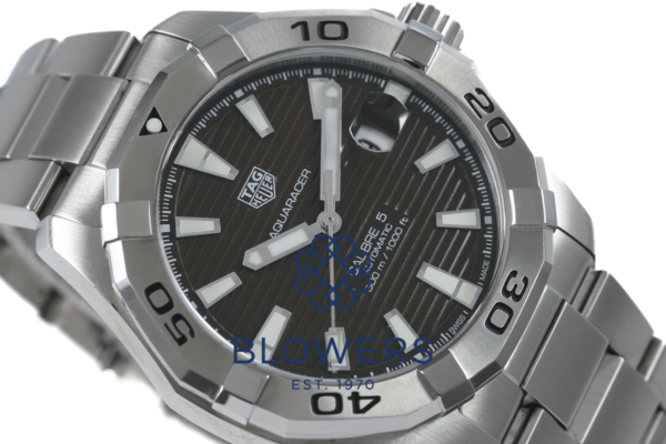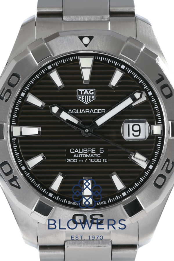 Tag Heuer Aquaracer WAY2018.BA0927. 43mm steel casing, housing an automatic, calibre 5 movement. Water resistant to 300 meters. Featuring a dark brown sunray dial with applied luminous hour markers. Featuring central luminous hours, minutes and seconds hands. A date window at the 3 o’clock position. Surrounded by a 60 minute graduated, uni-directional bezel. with anti-reflective sapphire crystal. Upon a steel bracelet with a folding clasp. Box and papers dated May 2021.