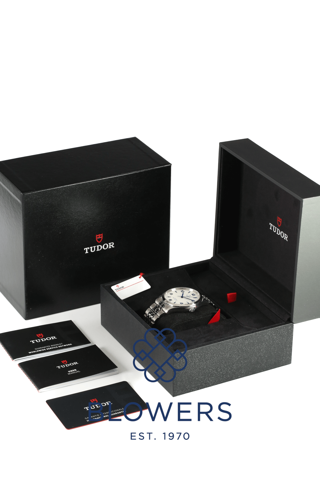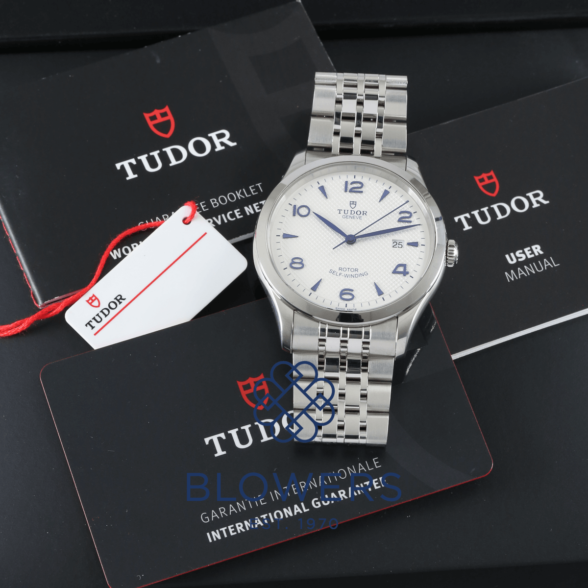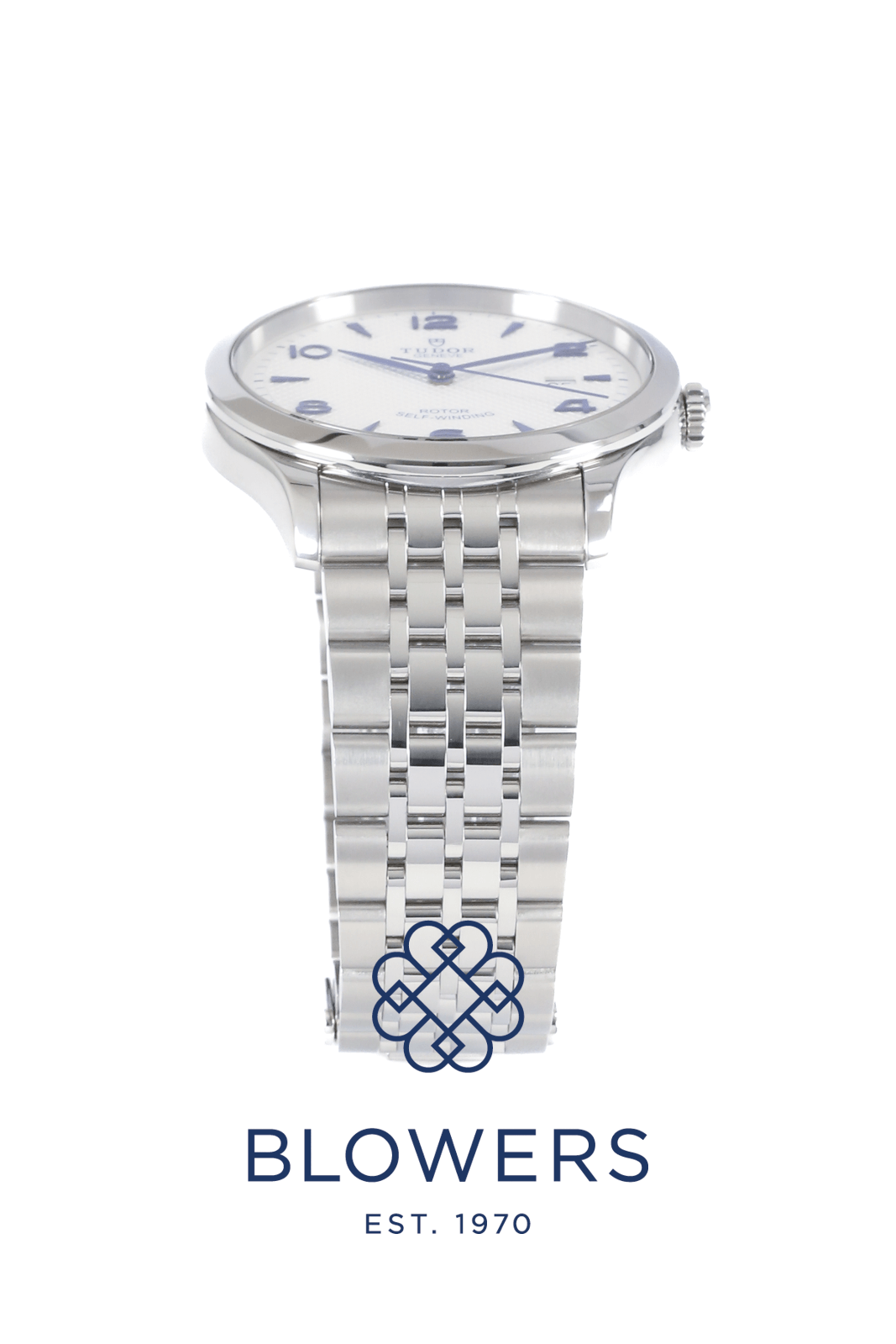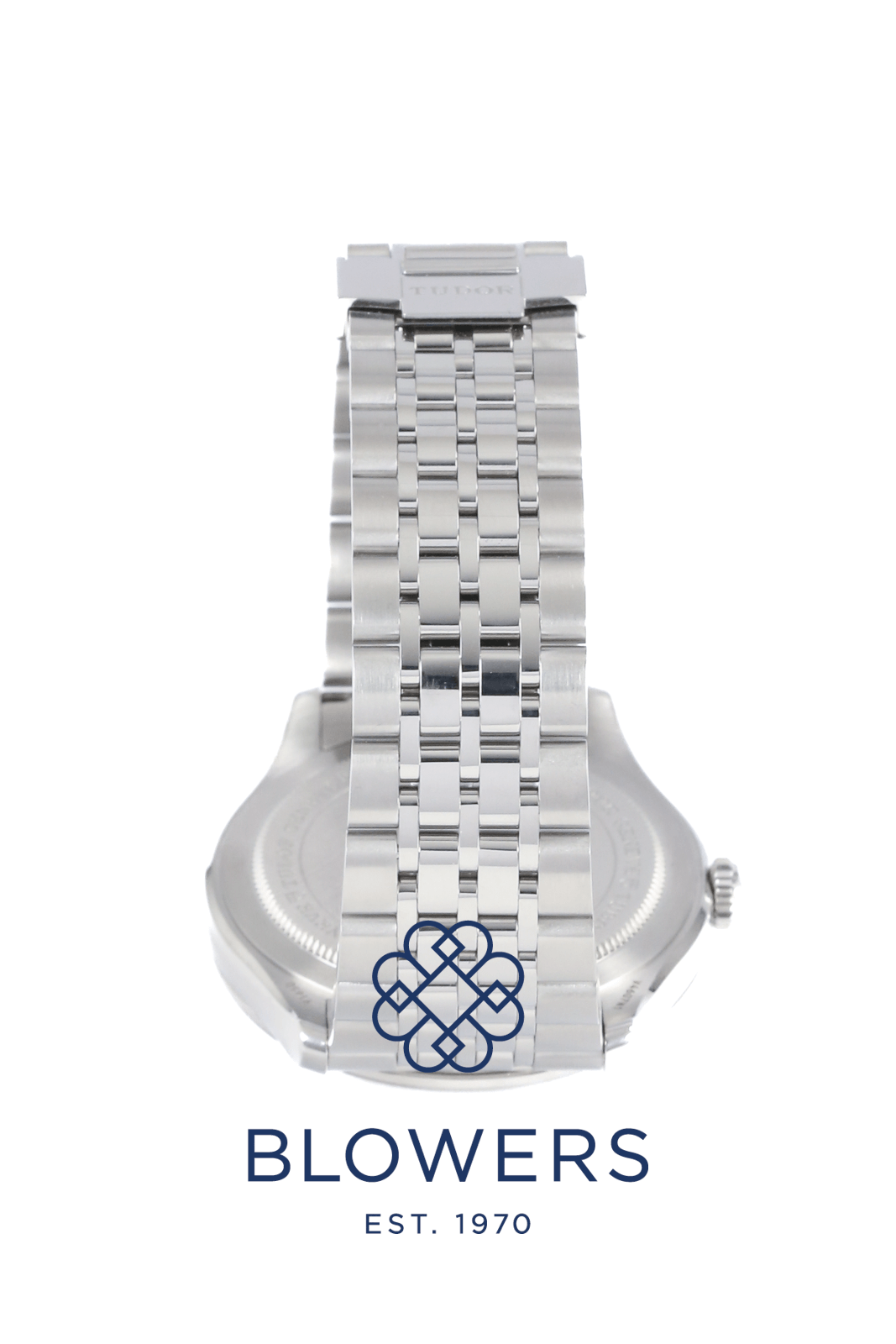 Tudor 1926 M91650-0005. Self-Winding Calibre 2824 Mechanical Movement, 38 Hour Power Reserve. 41mm Diameter Polished Steel Case, Water Resistant To A Depth Of 100 Meters. Opaline Dial With Embossed Blue Numeral And Baton Hour Markers, With Date Display At The 3 O’clock Position. Satin Brushed Steel Bracelet, With Folding Clasp. Box and papers sated October 2024.