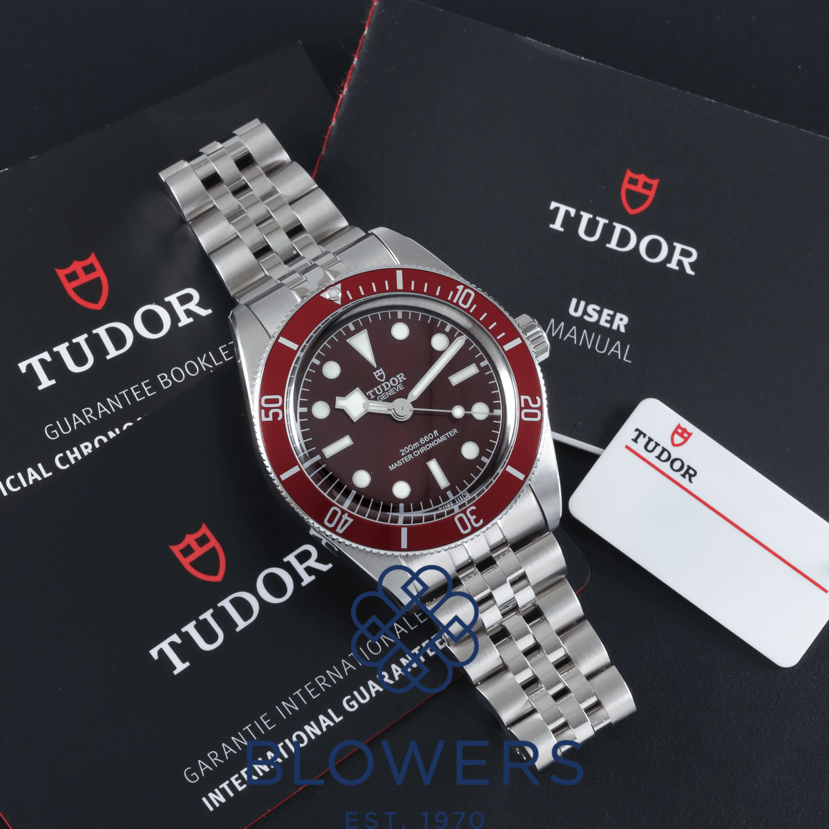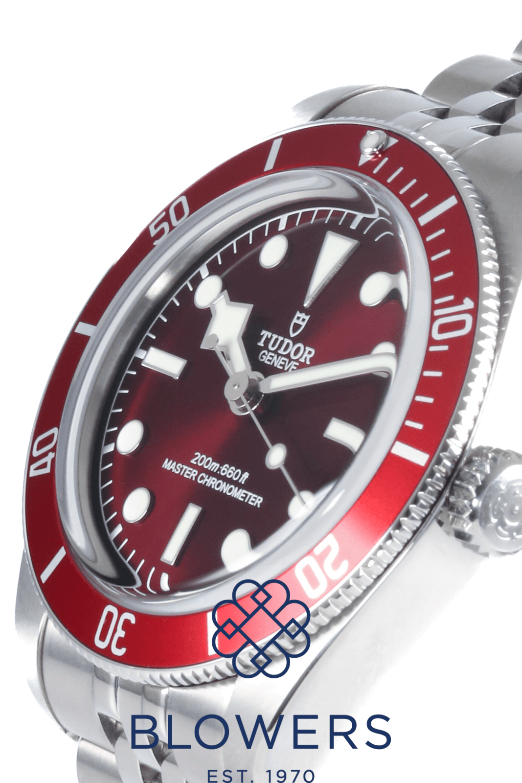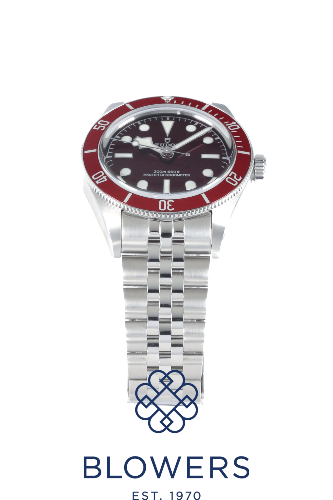 Tudor Black Bay 58 7939A1A0RU. Steel 39mm case, 200M Water Resistance. Automatic MT5400-U Calibre Movement, 65 Hour Power Reserve. Burgundy Dial With Luminous Hour Markers And, ‘snowflake’ Hands. Domed sapphire crystal. Unidirectional rotatable bezel in stainless steel with burgundy anodised aluminium insert. Tudor Brushed Stainless Steel Three Link, Folding Clasp And Safety Catch. Box and Papers dated April 2025.