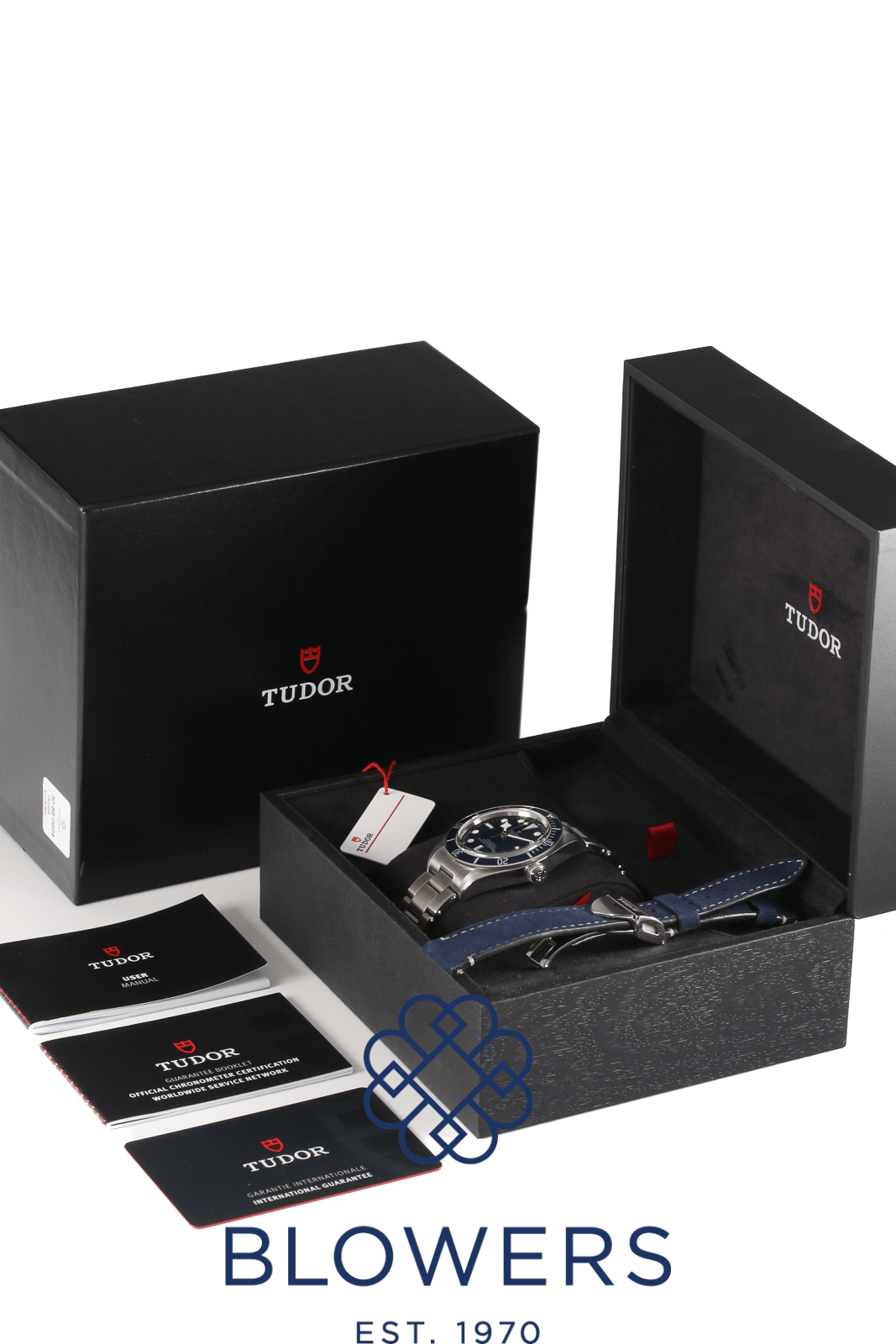Tudor Heritage Black Bay Fifty-Eight 79030B. Automatic Mt5402 Movement. 39mm Steel Case Which Is Water Resistant To 200 Meters. 28,800vph. 70 Hour Power Reserve. Blue Dial With Luminous Hour Markers And, ‘snowflake’ Hands. Uni- Directional Blue Bezel. Sapphire Crystal Glass. Steel Bracelet With Folding Clasp. Comes With A Blue Soft Touch Strap With A Steel Folding Clasp And Safety Catch. Box And Papers Dated October 2020.